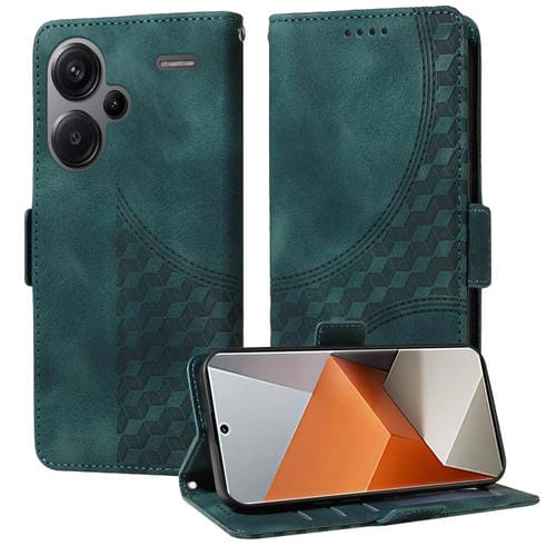 Funda de Cuero con Rombos En Relieve y Estrellas para Redmi Note 13 Pro+ 5G (Verde)