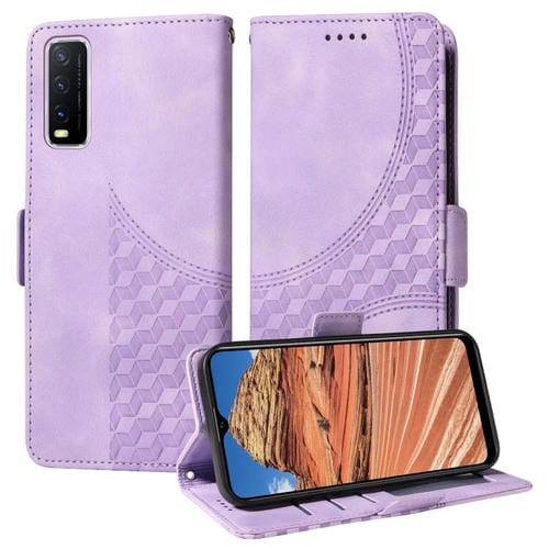 Funda de Cuero con Rombos En Relieve y Estrellas para Vivo Y20/Y20I/Y20S (Morado)