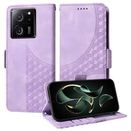 Funda de Cuero con Rombos En Relieve y Estrellas para Xiaomi 13T/13T Pro (Morado)