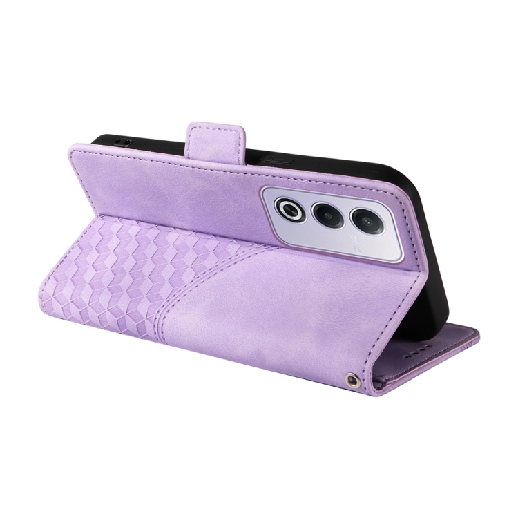 Funda de Cuero con Rombos y Estrellas En Relieve para Oppo A3 Pro 5G Global/India (Morado)