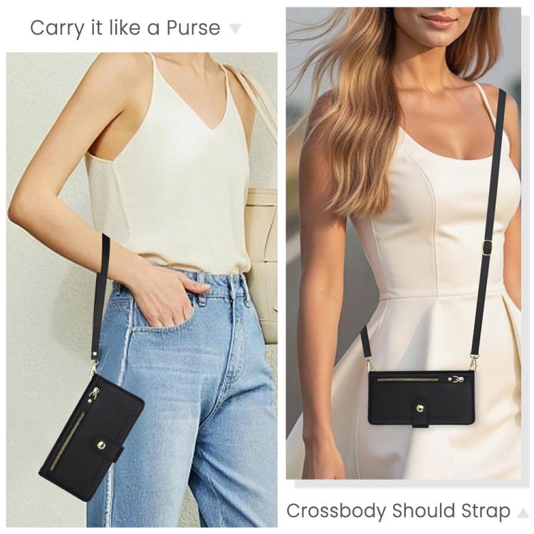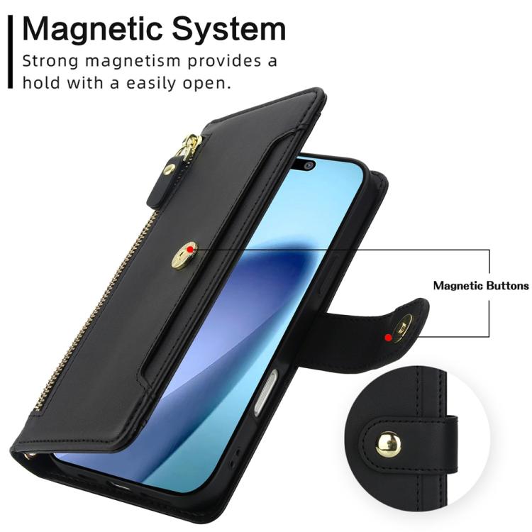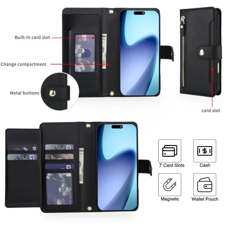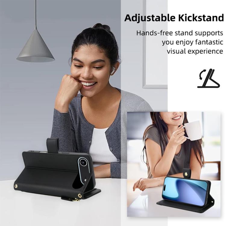 Funda de cuero con siete ranuras para tarjetas y cremallera para iPhone Air con cordón (negra)