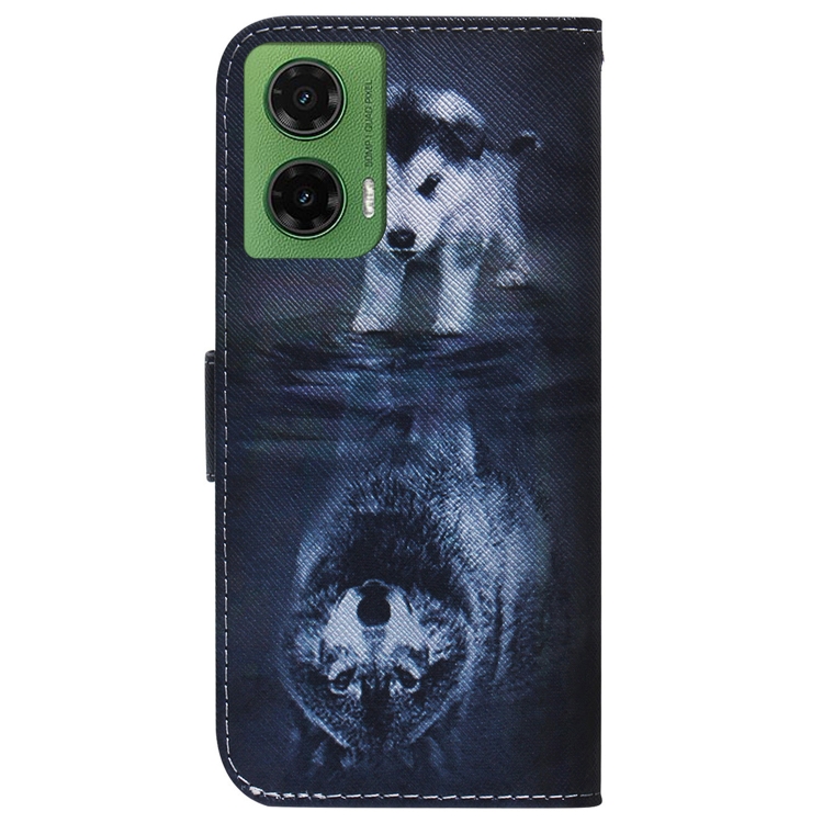 Funda de Cuero con Tapa para Motorola Moto G35 con Dibujo Colorido (Lobo y Perro)