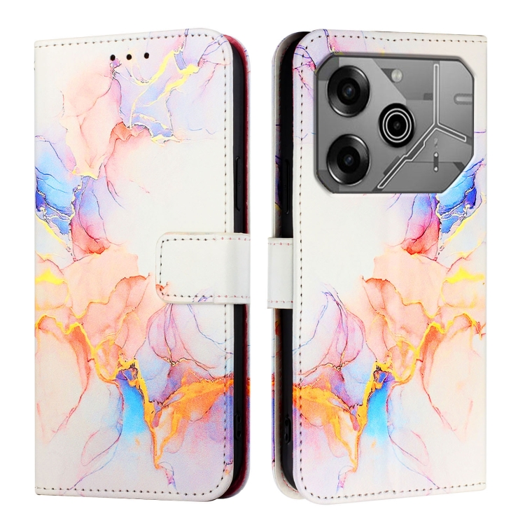Funda de Cuero con Tapa para Tecno Pova 6 Neo Pt003 con Diseño Mármol (Galaxy Marble White)