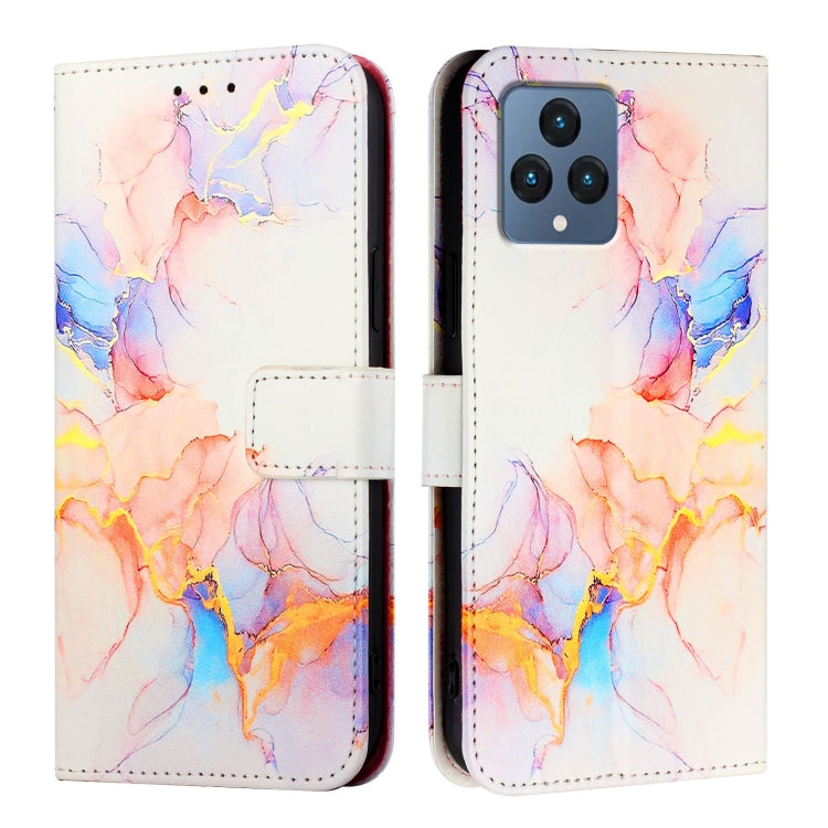Funda de Cuero con Tapa para Teléfono T-Mobile Revvl 6X 5G Pt003 (Galaxy Marble White)