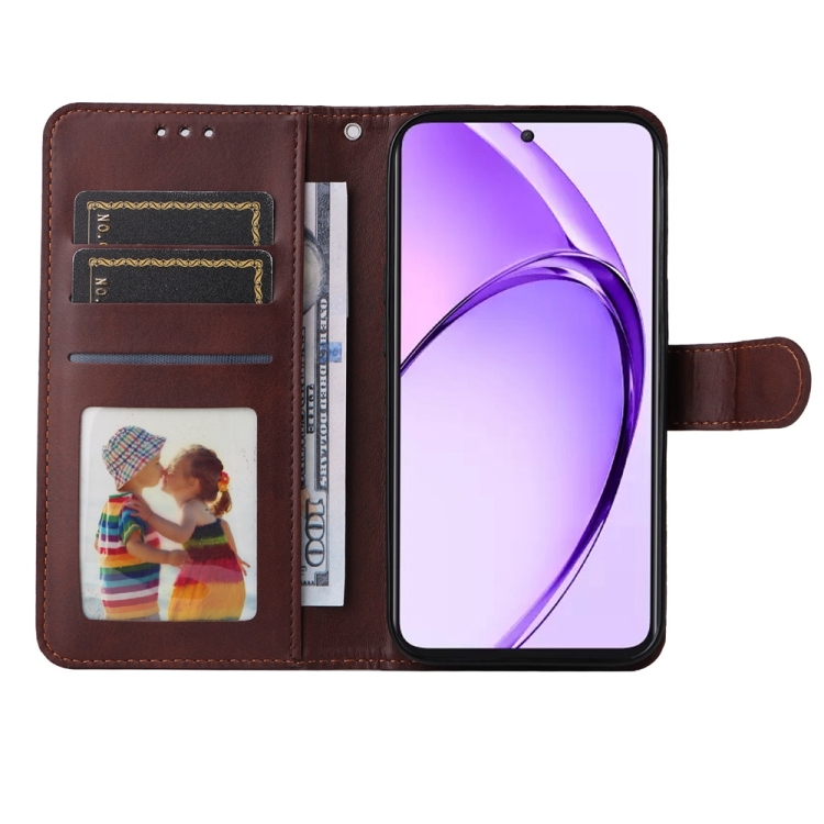 Funda de Cuero con Tapa con Textura Clásica de Becerro para Oppo A3 Pro 5G Global/India (Marrón)