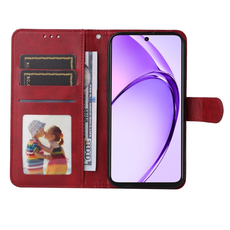 Funda de Cuero con Tapa con Textura Clásica de Becerro para Oppo A3X 4G/A3X 5G (Rojo)