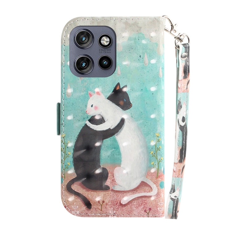 Funda de Cuero con Tapa para Motorola Edge 50 Neo 5G Global (Gato Blanco y Negro)