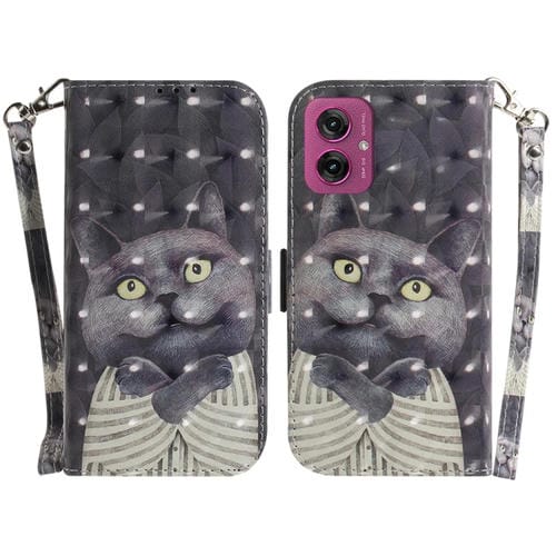 Funda de Cuero con Tapa 3D para Motorola Moto G55 (Hug Cat)