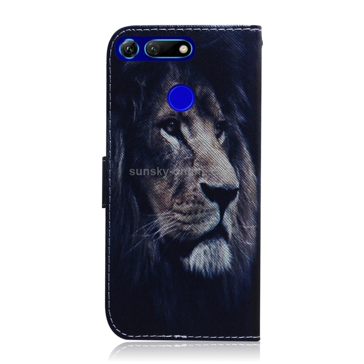 Funda de Cuero con Tapa Horizontal y Dibujo León para Huawei Honor View 20 con Soporte y Ranuras