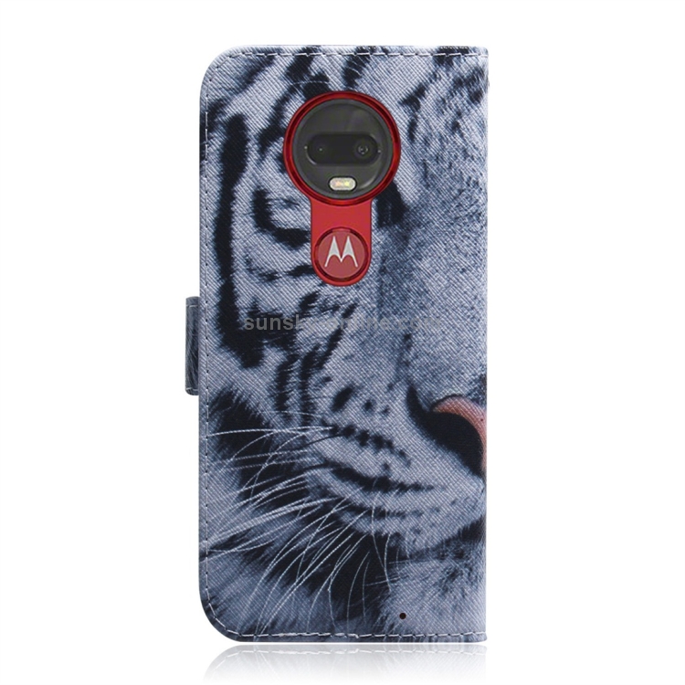 Funda de Cuero con Tapa Horizontal y Dibujo Tigre para Motorola Moto G7 y Moto G7 Plus con Soporte y Ranuras