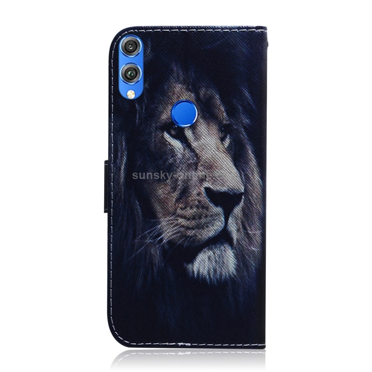 Funda de Cuero con Tapa Horizontal y Dibujo León para Huawei Honor 8X con Soporte y Ranuras