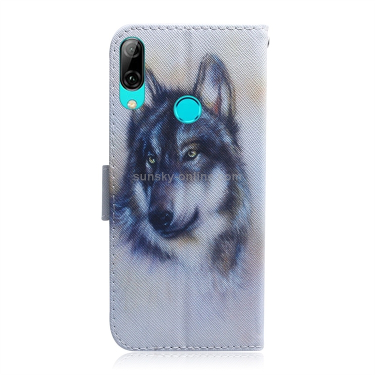 Funda de Cuero con Tapa Horizontal y Dibujo de Lobo Blanco para Huawei P Smart (2019) y Honor 10 Lite con Soporte y Ranuras