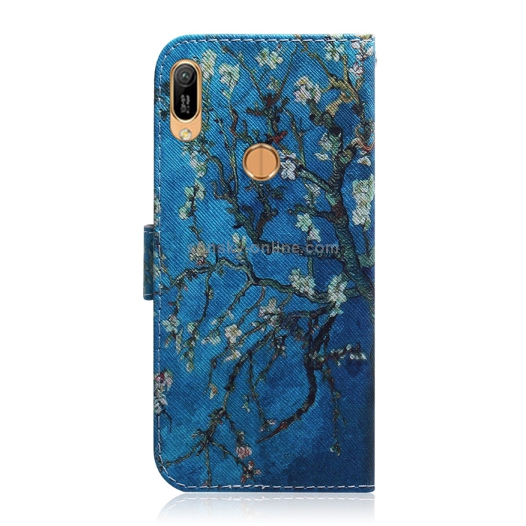 Funda de Cuero con Tapa Horizontal para Huawei Y6 (2019) con Soporte, Ranuras y Billetera (Flor)