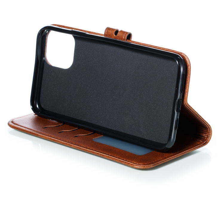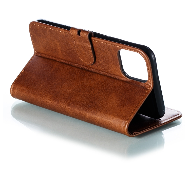 Funda de Cuero iPhone 13 Mini Tapa Horizontal Gato Feliz Soporte Ranuras Billetera (Marrón)