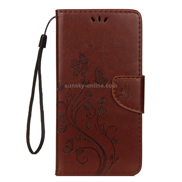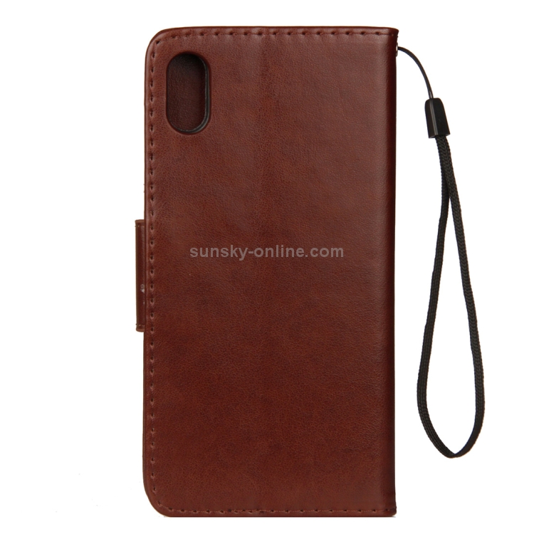 Funda de Cuero con Tapa Horizontal para iPhone Xs Max con Patrón de Mariposa, Ranura para Tarjeta, Soporte, Billetera y Cordón (Marrón)