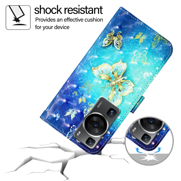 - 1x Funda de Cuero con Tapa Horizontal y Pintura 3D para Huawei P60 Pro (Mariposa Dorada)