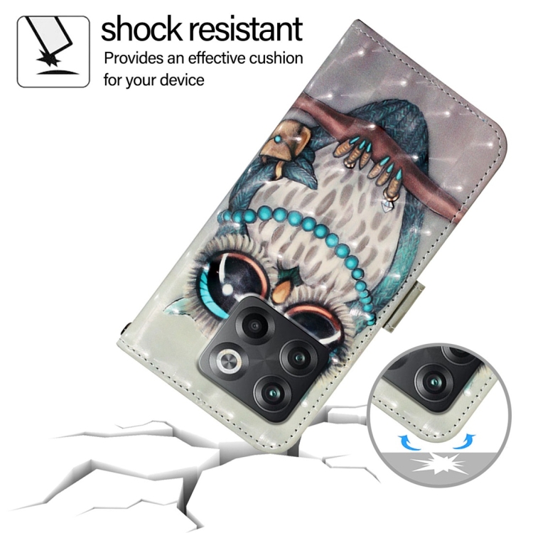 Funda de Cuero con Tapa Horizontal y Pintura 3D para OnePlus Ace Pro/10T Global (Búho Gris)