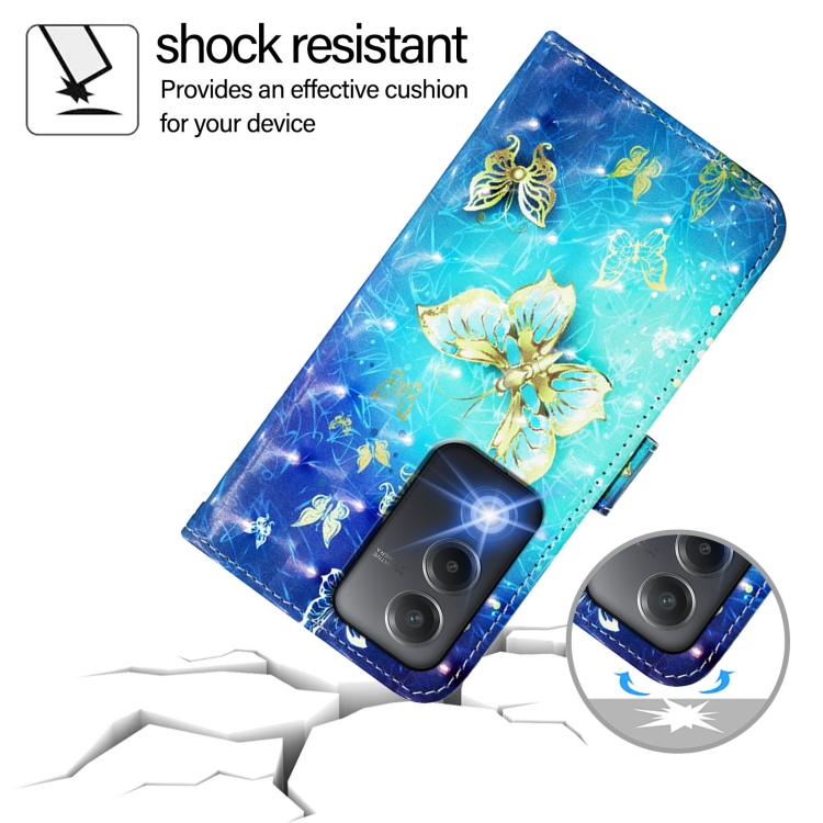 Funda de Cuero con Tapa Horizontal con Pintura 3D para Oppo A3 Pro 5G Global / A3 Pro 5G India (Mariposa Dorada)