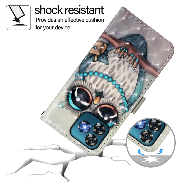 Funda de Cuero con Tapa Horizontal y Pintura 3D para Oukitel C53 (Búho Gris)