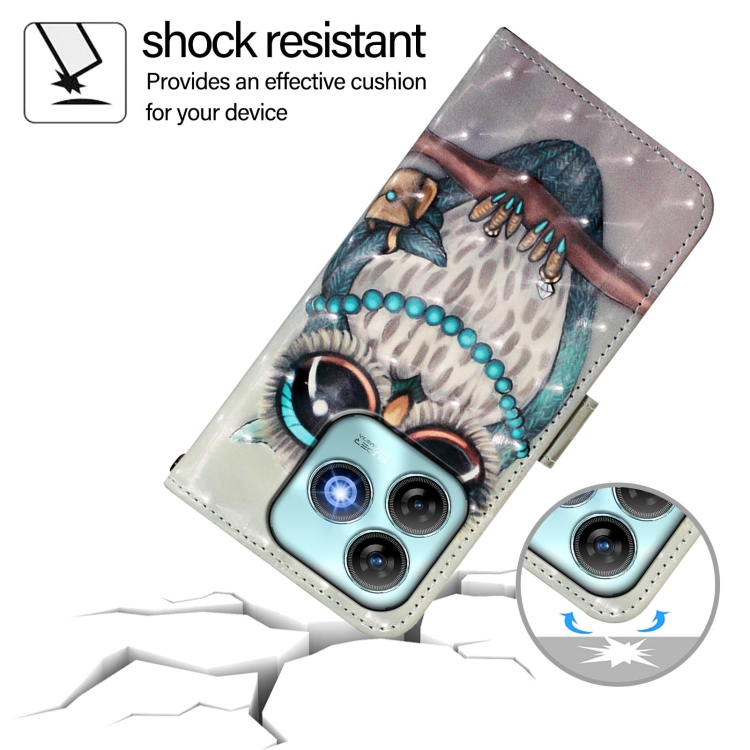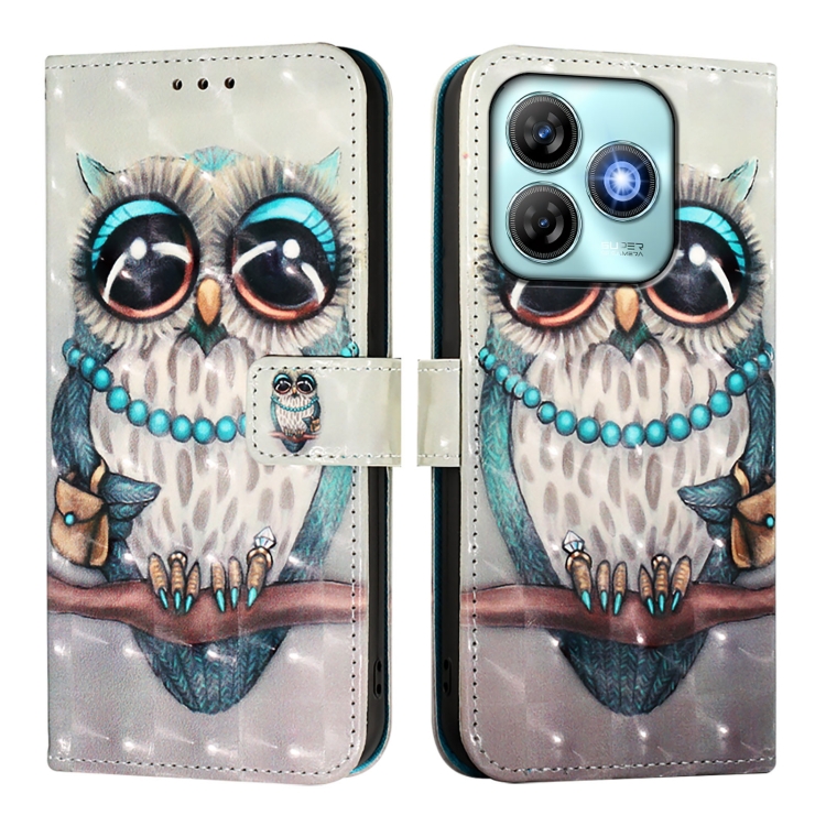 Funda de Cuero con Tapa Horizontal y Pintura 3D para ZTE Blade A75 4G (Búho Gris)