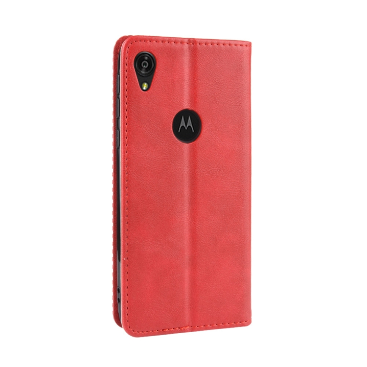 Funda de Cuero Motorola Moto E6 con Tapa Horizontal, Hebilla Magnética, Soporte, Ranuras y Marco de Fotos (Rojo)