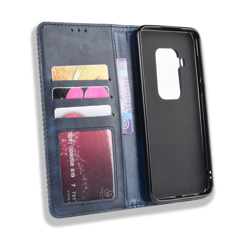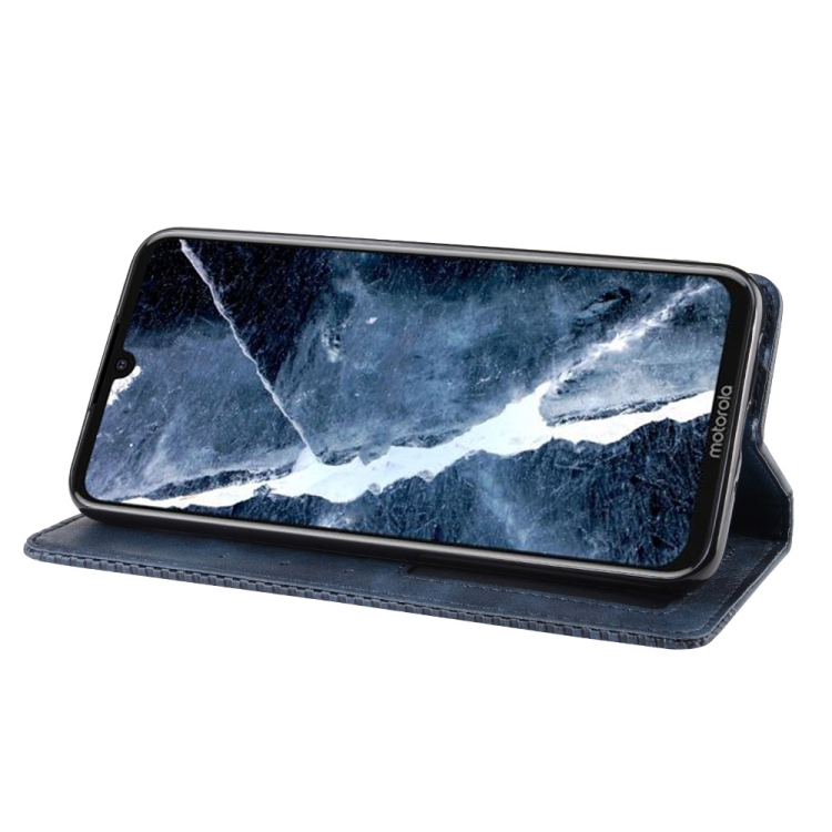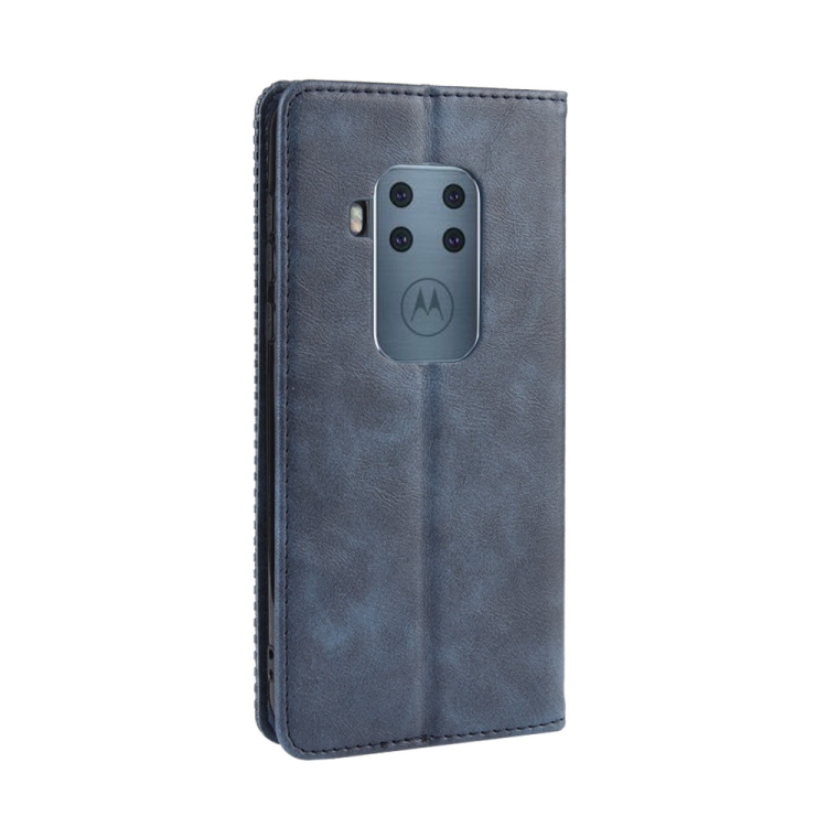 Funda de Cuero con Tapa Horizontal y Hebilla Magnética para Motorola Moto One Pro con Soporte y Ranuras para Tarjetas (Azul)