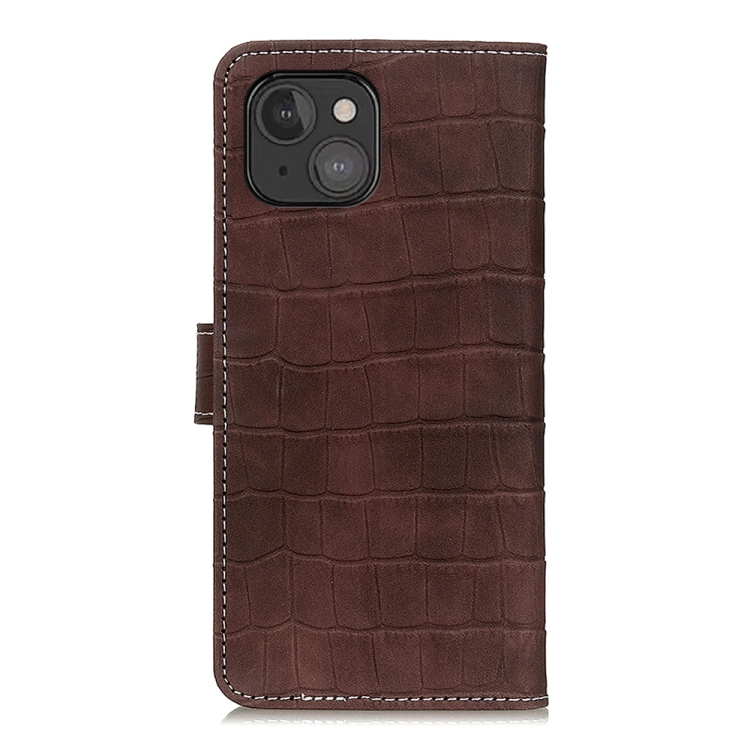 Funda de Cuero iPhone 13 Mini Tapa Horizontal Textura Cocodrilo Soporte Ranuras Tarjetas Billetera (Marrón)