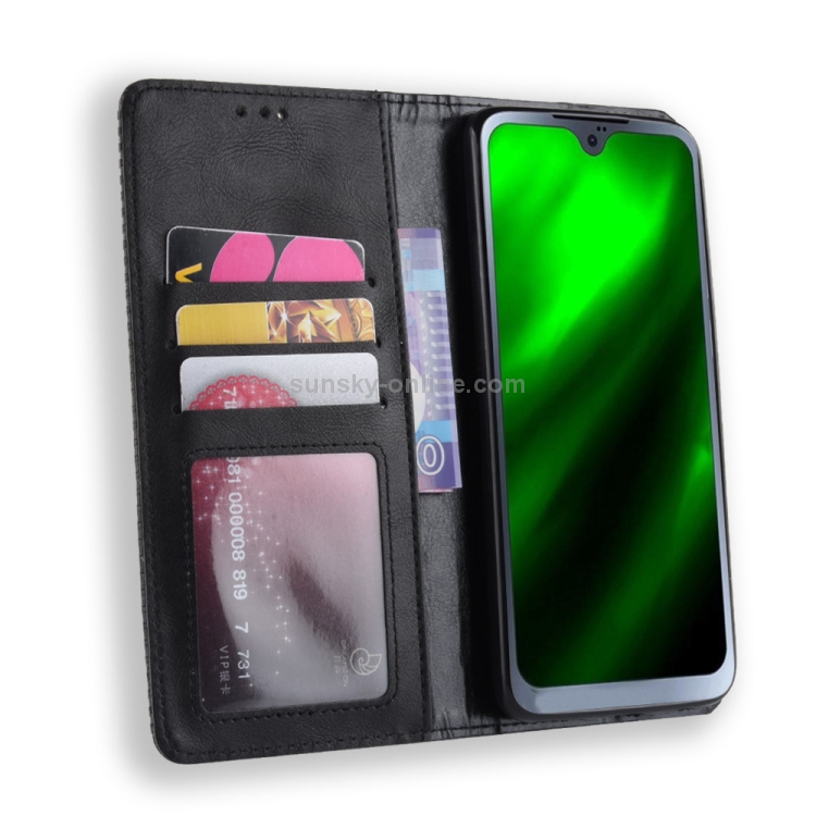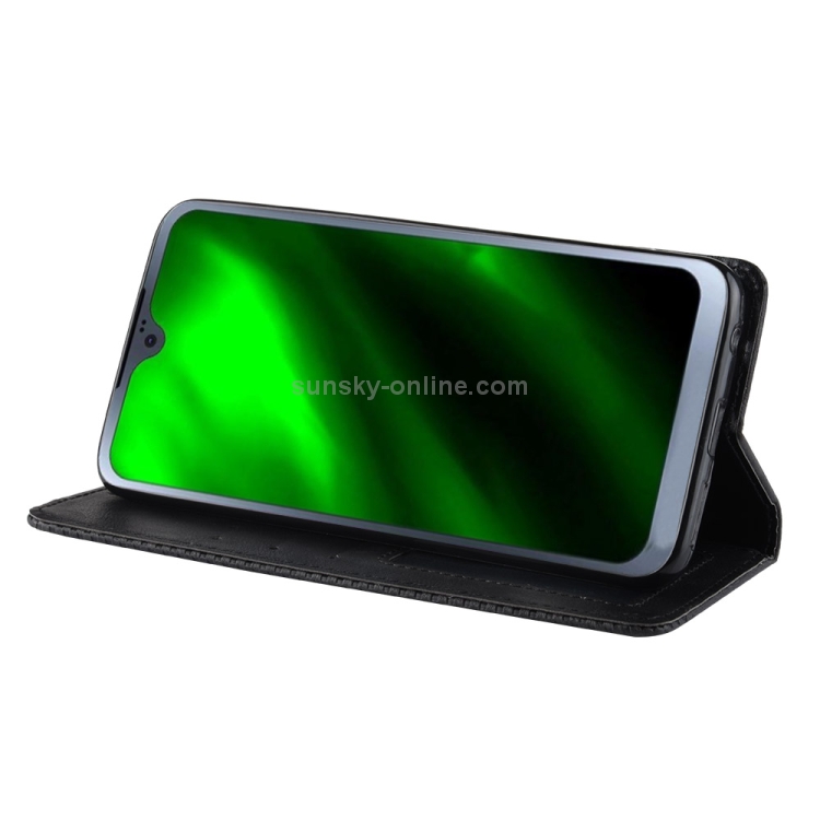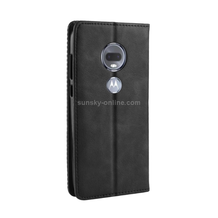 Funda Cuero Moto G7 con Tapa Horizontal, Textura Retro, Hebilla Magnética, Soporte y Ranuras para Tarjetas (Negro)