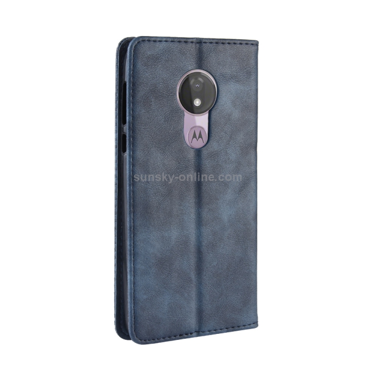 Funda de Cuero con Tapa Horizontal para Motorola Moto G7 Power (UE) con Soporte y Ranuras (Azul)