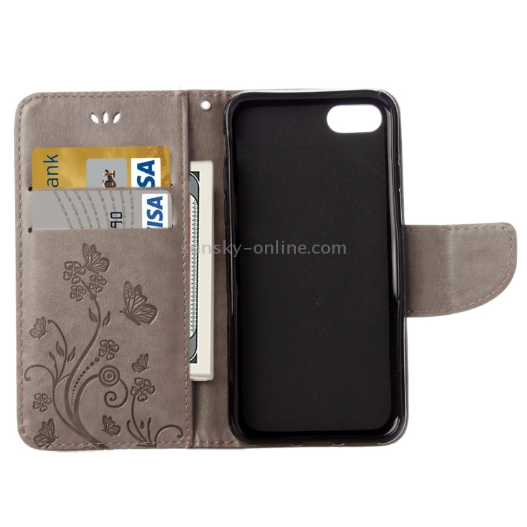 Funda de Cuero para iPhone 8 y 7 con Tapa Horizontal, Soporte, Ranuras para Tarjetas y Billetera (Gris)