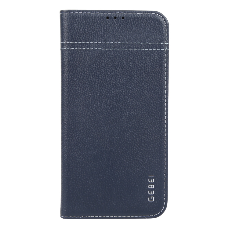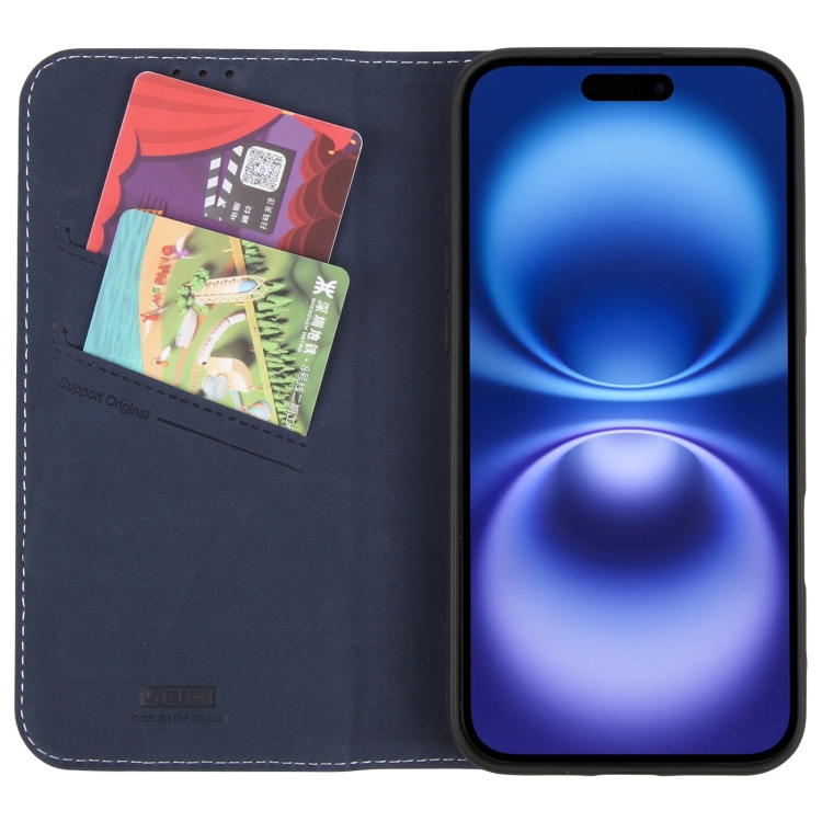 Funda de Piel Gebei con Tapa Horizontal y Diseño de Grano Superior para iPhone 16 Plus (Azul)