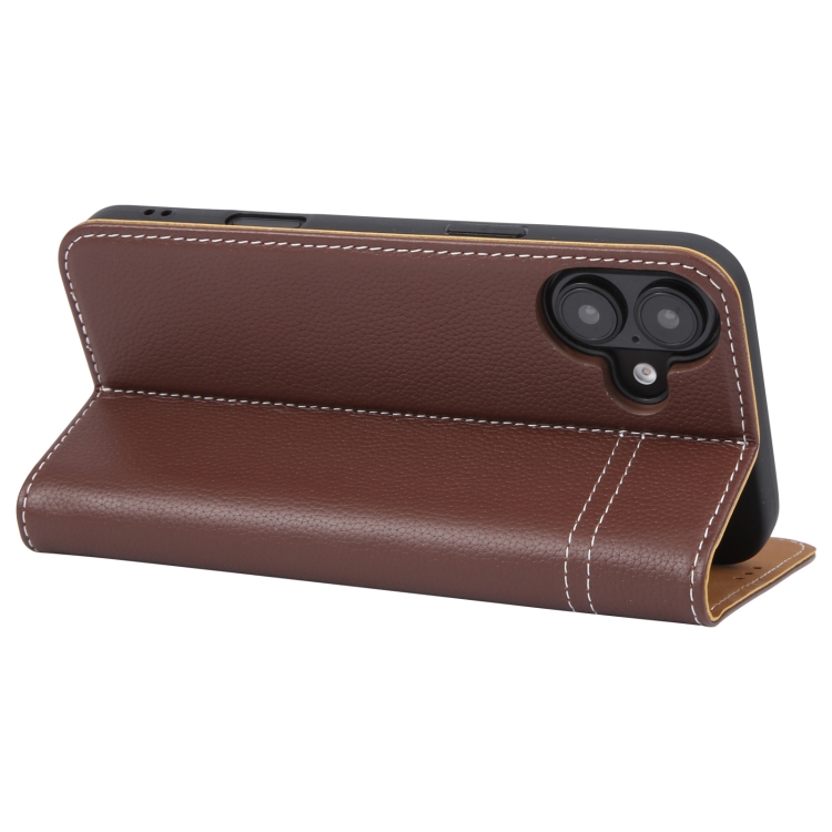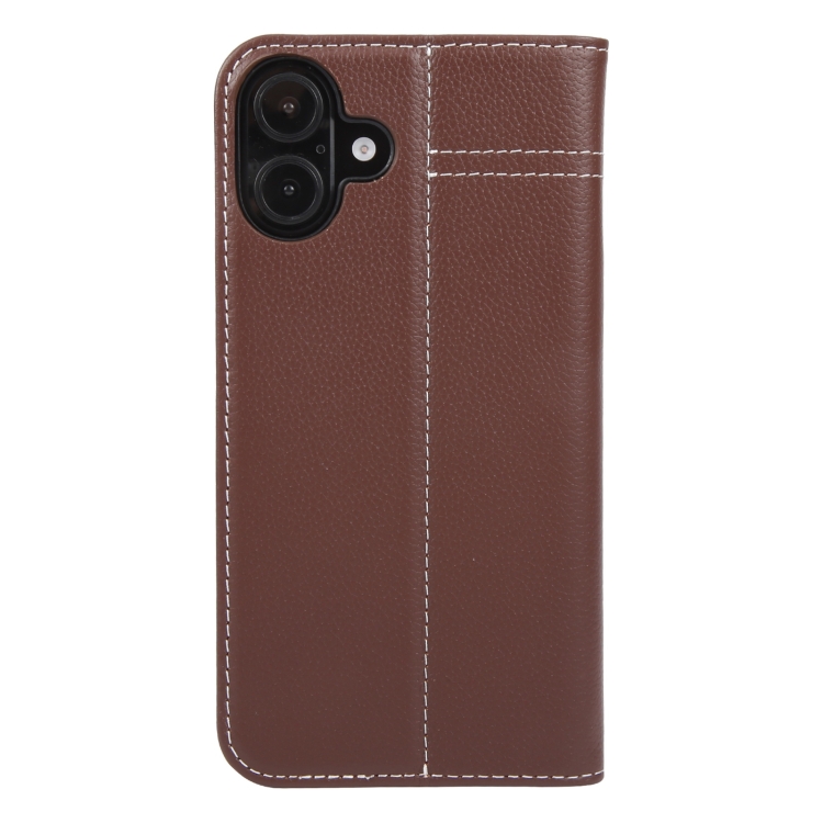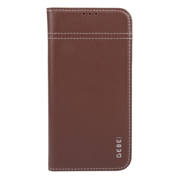 Funda de Piel Gebei para iPhone 16 Plus con Tapa Horizontal (Marrón)