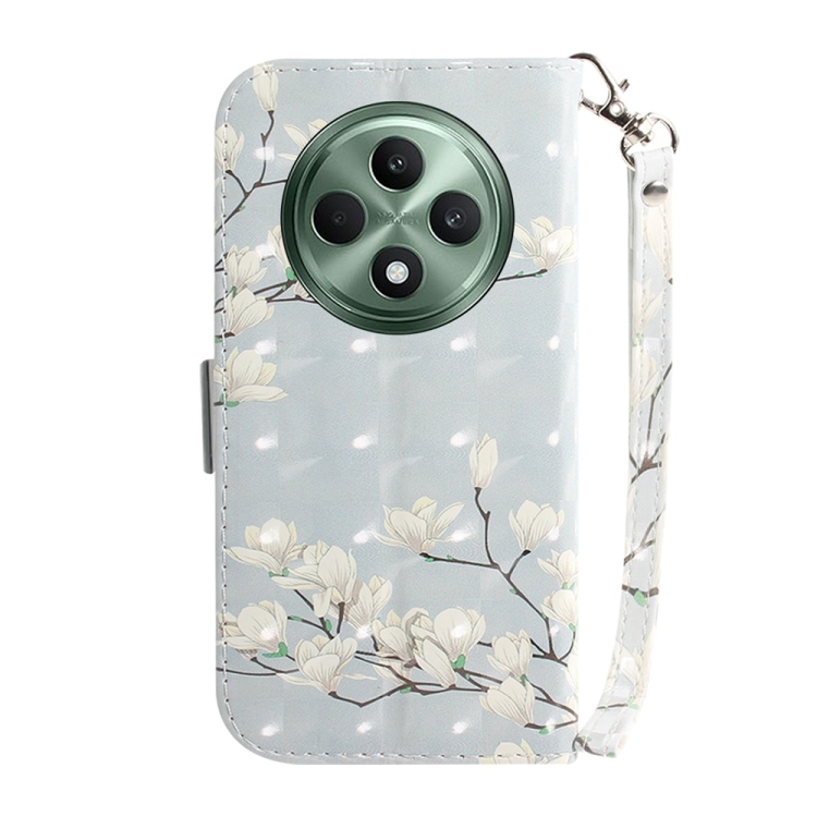 Funda de Cuero con Tapa Horizontal En Color 3D para Oppo Reno12 F 5G (Magnolia)