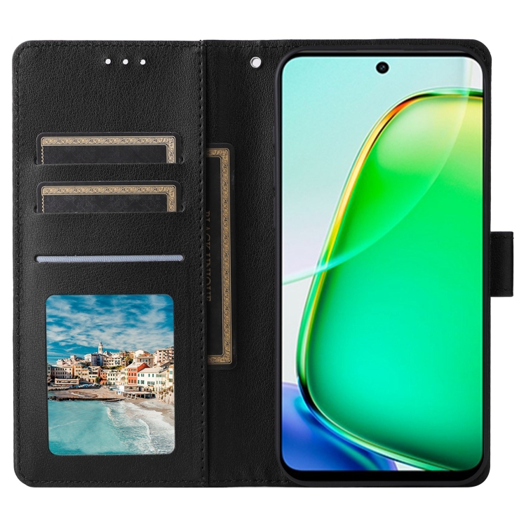 Funda de Cuero con Tapa Horizontal Multifuncional para Teléfono Vivo Y28 4G con Ranura para Tres Tarjetas (Negro)