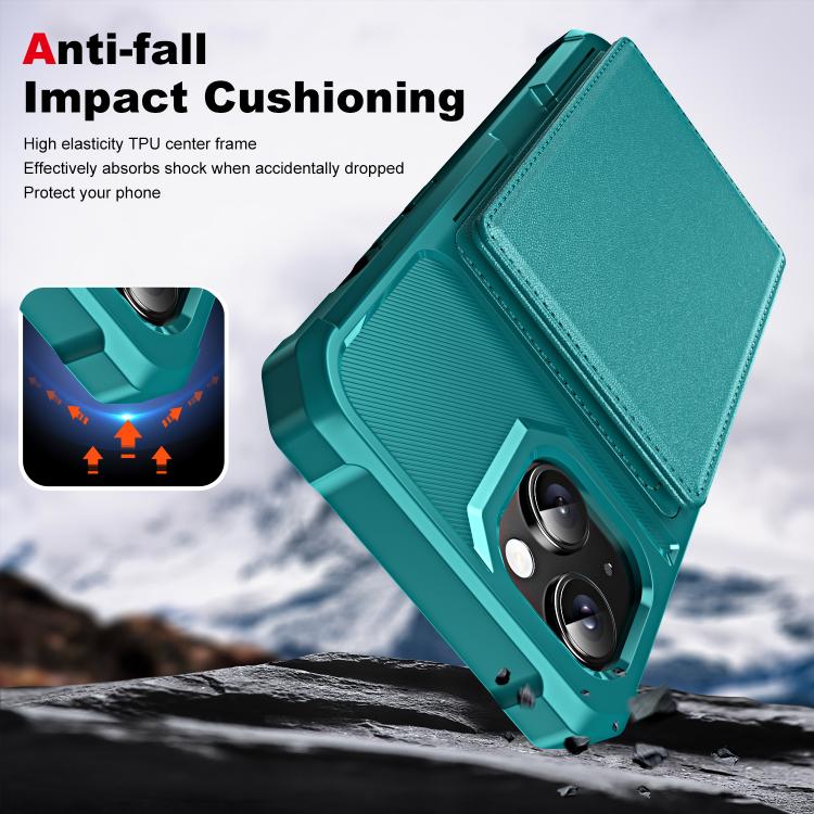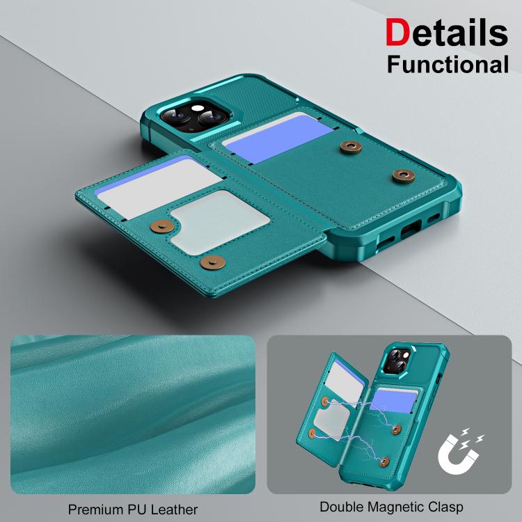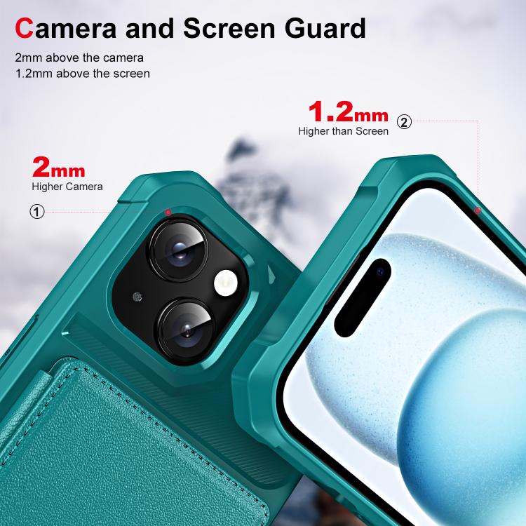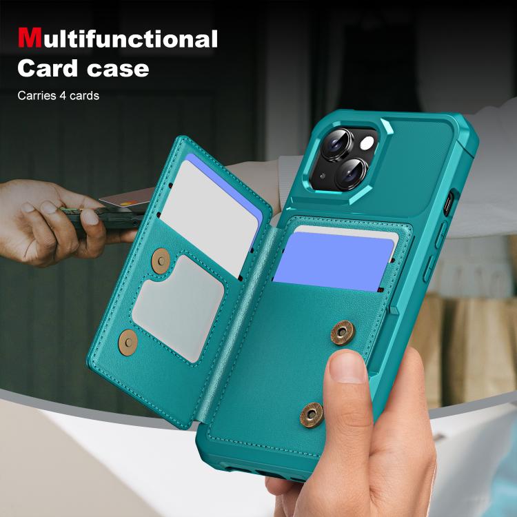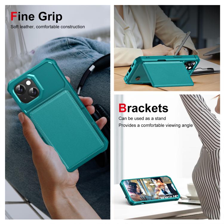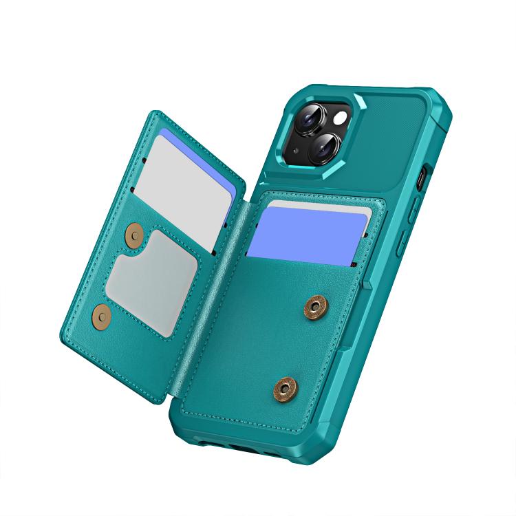 Funda para Teléfono de Cuero con Tapa Horizontal iPhone 14 Tarjetero (Verde Cian)
