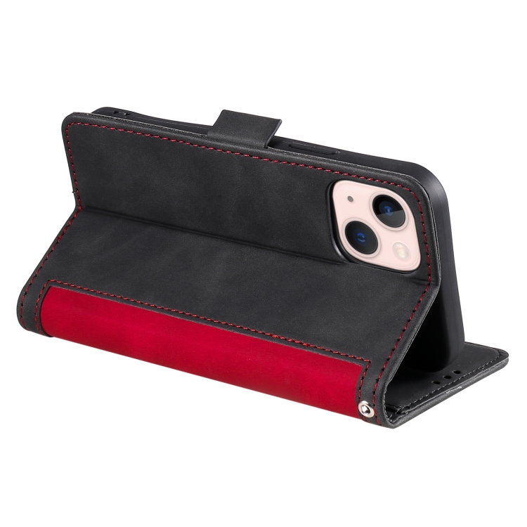 Funda de Cuero con Tapa Horizontal para iPhone 15 Retro Splicing (Rojo)