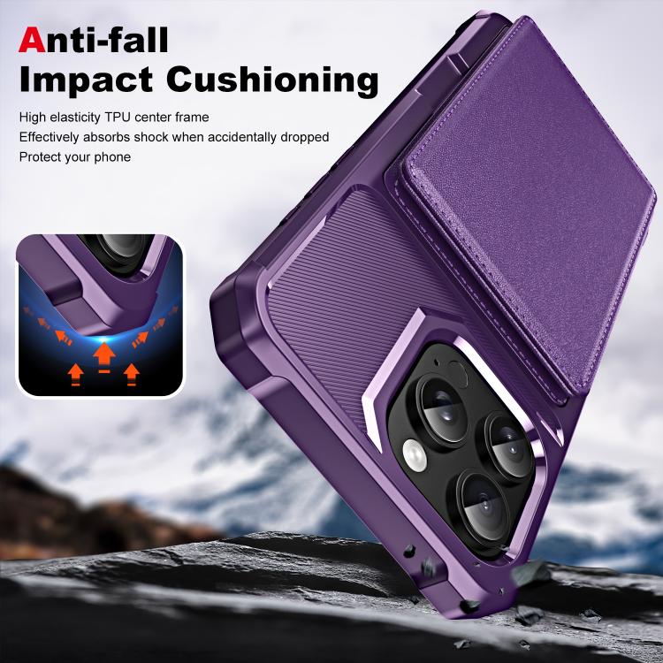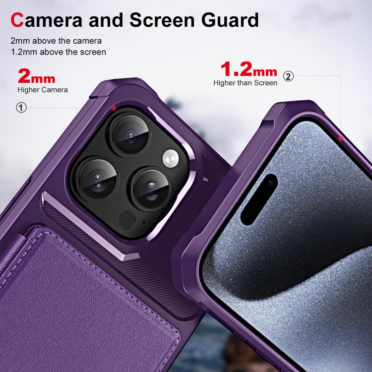 Funda de Cuero con Tapa Horizontal para iPhone 16 Pro TaRJetero (Morado)