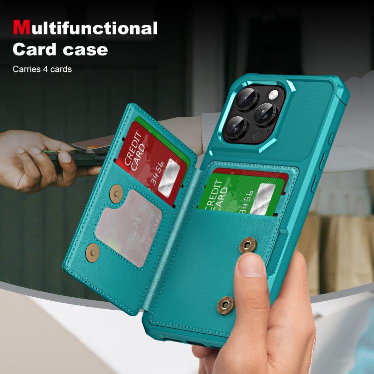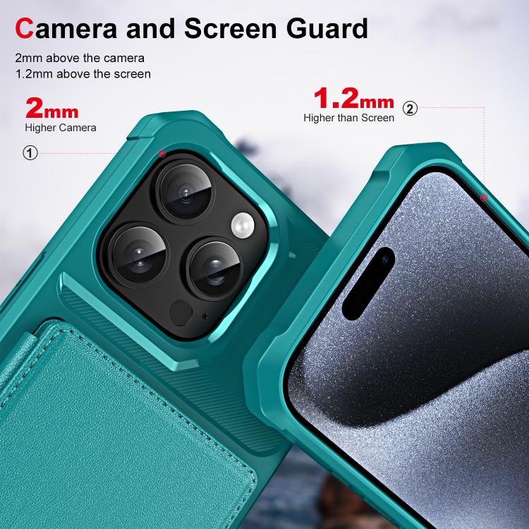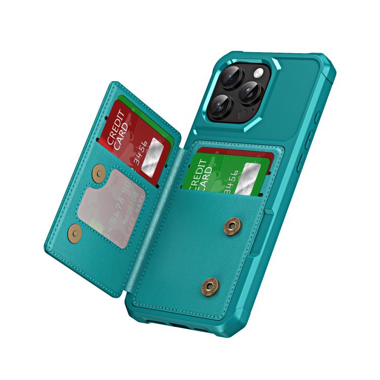 Funda de Cuero con Tapa Horizontal para iPhone 16 Pro con Tarjetero (Verde Cian)