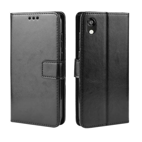 Funda de Cuero Huawei Honor 8S Tapa Horizontal Retro Textura Caballo Loco Soporte Ranuras Tarjetas Marco Fotos (Negro)
