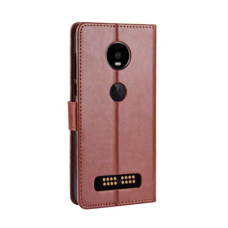 Funda Cuero con Tapa Horizontal Retro Motorola Moto Z4 Z4 Play Soporte Ranuras Tarjetas Marco Fotos (Marrón)
