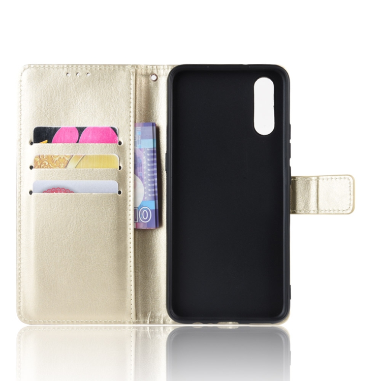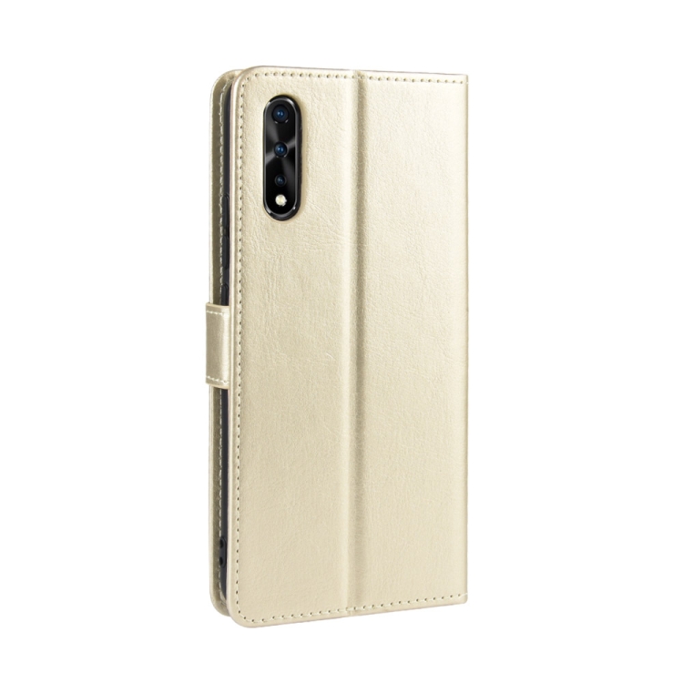 Funda de Cuero con Tapa Horizontal Retro con Textura de Caballo Loco para Vivo Iqoo Neo / S1 / Y7S / Z5, con Soporte, Ranuras para Tarjetas y Marco de Fotos (Dorado)
