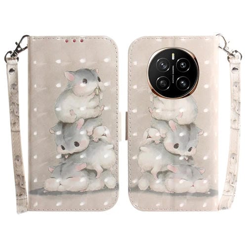 Funda de Cuero con Tapa Horizontal y Diseño 3D para Honor Magic7 (Ardillas)