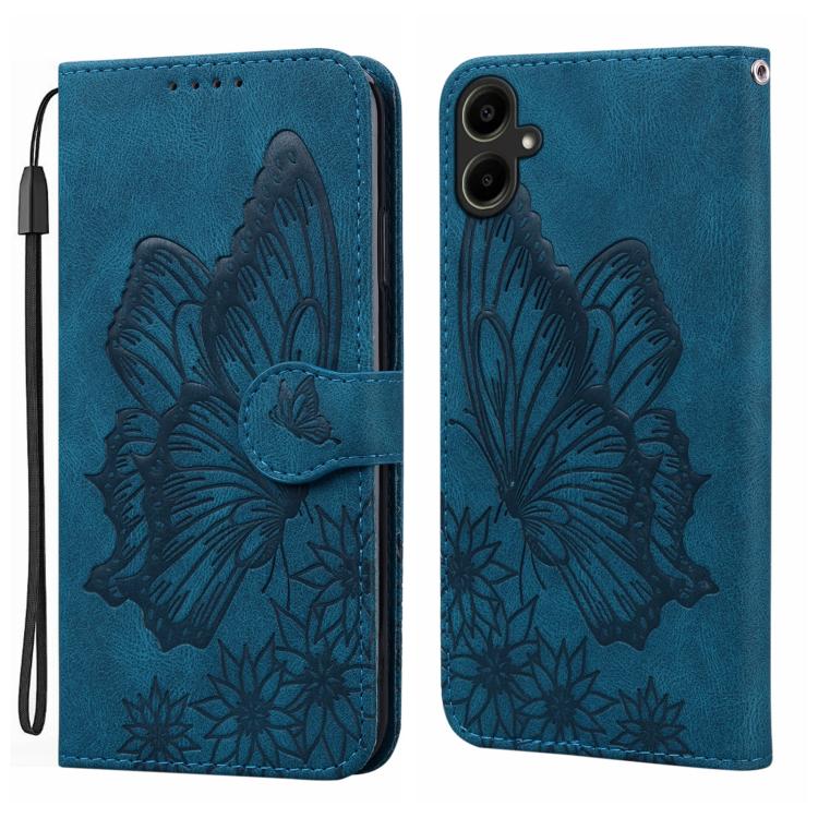 Funda de cuero con tapa horizontal y diseño retro de mariposas en relieve para Samsung Galaxy A07 4G/A06 4G (azul)