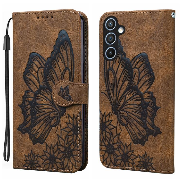 Funda de cuero con tapa horizontal y diseño retro de mariposas en relieve para Samsung Galaxy A17 5G / A26 5G (marrón)
