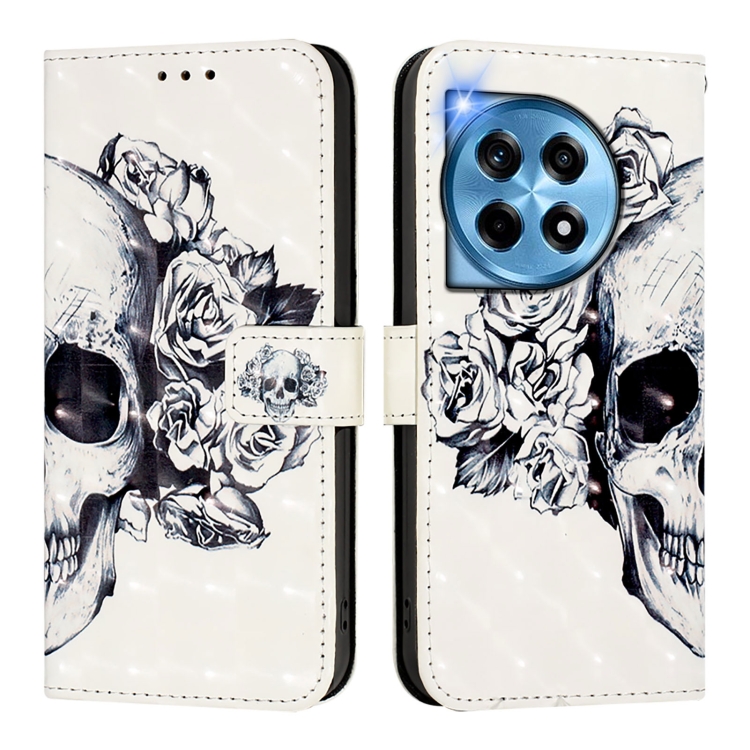 Funda de Cuero con Tapa Horizontal y Pintura 3D para OnePlus 12 5G Global (Calavera)
