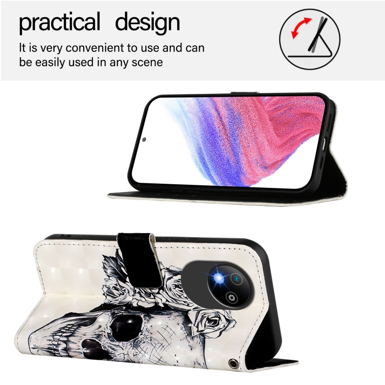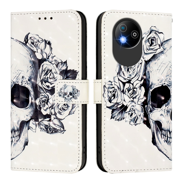 Funda de Cuero con Tapa Horizontal y Pintura 3D para ZTE Blade A35 Lite/A35 Core (Calavera)