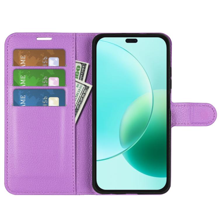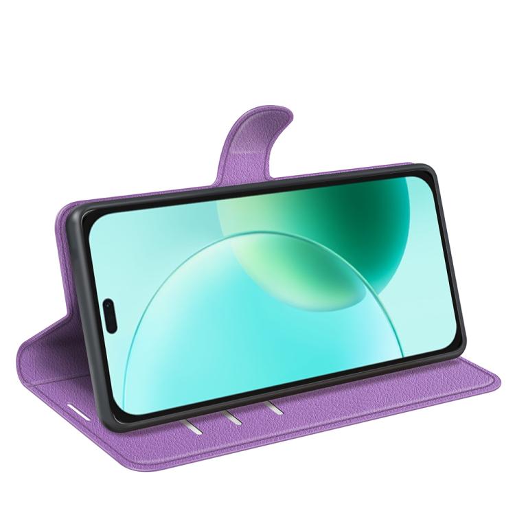 Funda de Cuero con Tapa Horizontal y Soporte para Honor 400 Lite con Textura de Lichi (Morado)