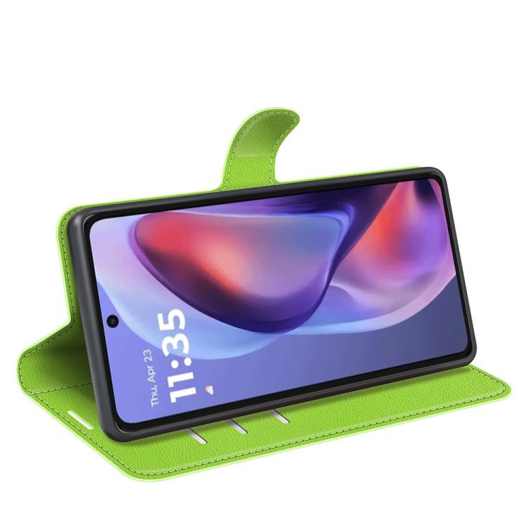 Funda de Cuero con Tapa Horizontal y Textura de Lichi para Motorola Moto E15 con Soporte (Verde)