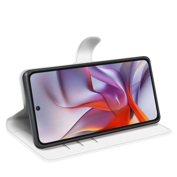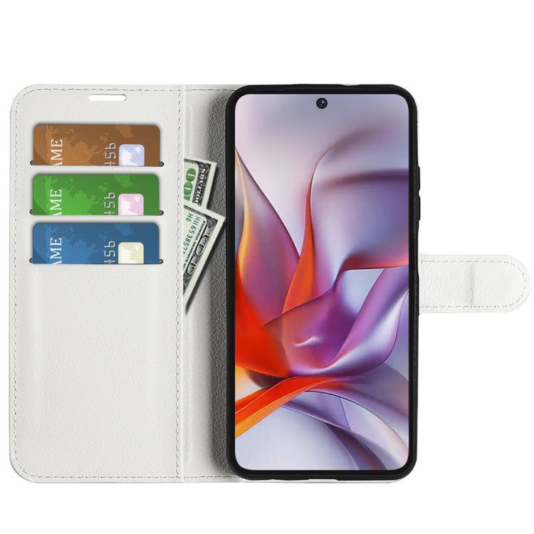 Funda de Cuero con Tapa Horizontal y Textura de Lichi para Motorola Moto G 5G (2025) con Soporte (Blanco)