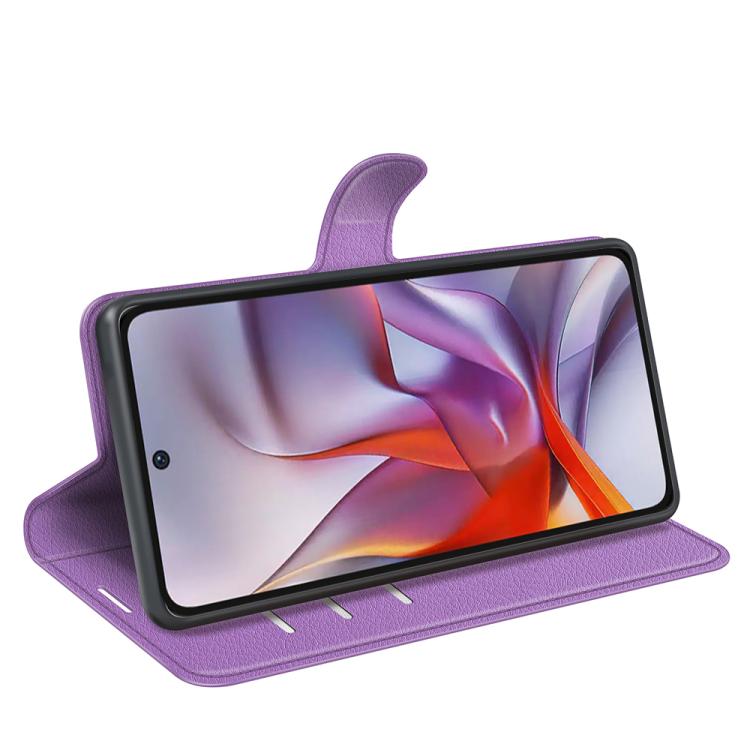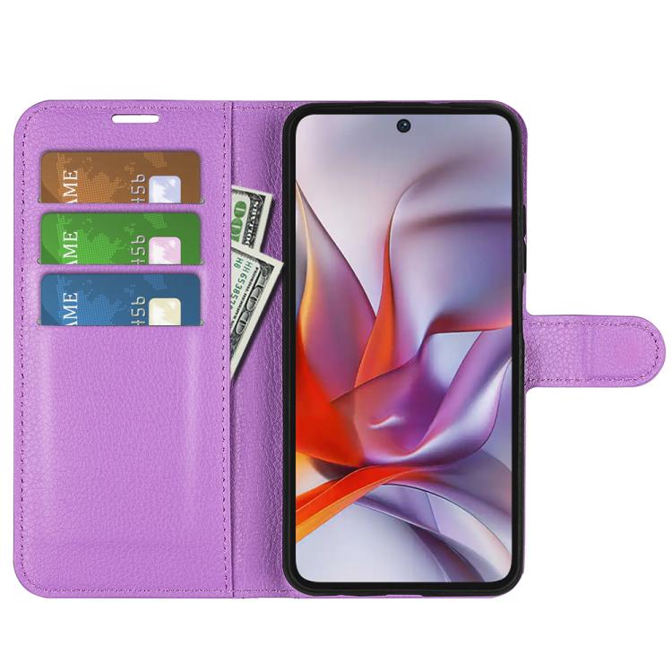 Funda Cuero con Tapa Horizontal Textura Lichi para Motorola Moto G 5G (2025) (Morado)